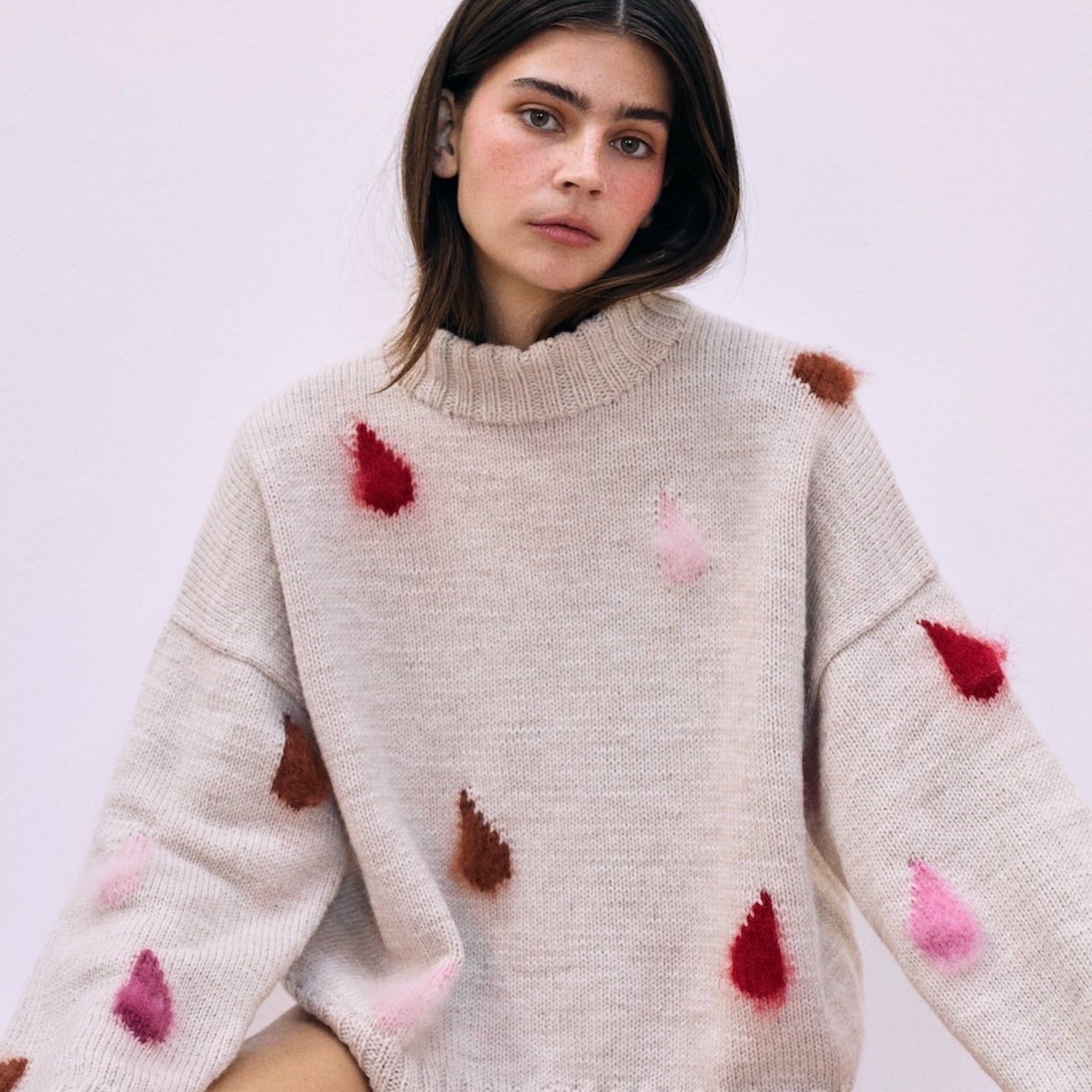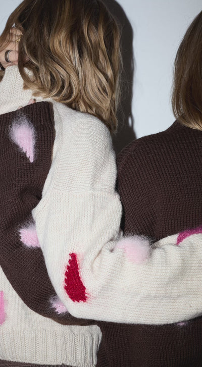 Spektakelstrik og Flow Intimates lancerer sammen Flow Sweater. En vidunderlig og blød sammensmeltningen af to brands og to historier, der med sine bloddråber indbyder til at starte vigtige samtaler om menstruation og kvinders helbred - og til at tage små pauser i hverdagen (det kræver den for at blive til), som kan være særligt vigtige i lutealfasen og i blødningsdagene.
